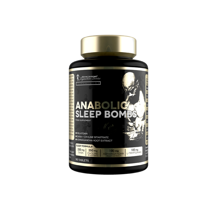 Anabolic Sleep Bombs. Suplement diety. Produkt w tabletkach zawierający m.in. dwuwinian choliny i melatoninę, przeznaczony dla osób dorosłych. *Melatonina pomaga w skróceniu czasu potrzebnego na zaśnięcie, a korzystne działanie występuje w przypadku spożycia 1 mg melatoniny krótko przed pójściem spać.